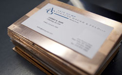 Considered the standard for quality, engraving can add detail and dimension to your printed identity. It offers a subtle tactile quality that has long been associated with distinction and prestige. Engraving has the extraordinary ability to hold small type and fine detail better than any other printing technique.